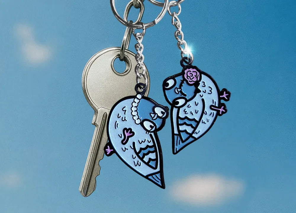 Комплект от 2 бр. метални ключодържатели. Един за теб, един за другото гълъбче 🕊️❤️
